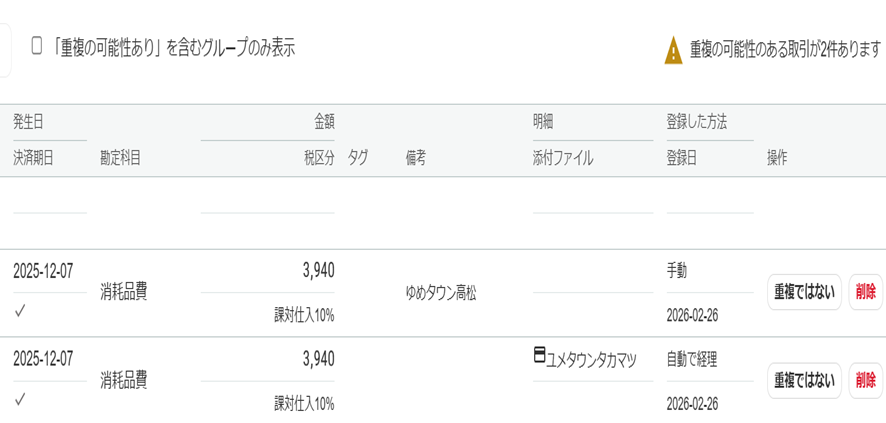 経費を二重で入力すると