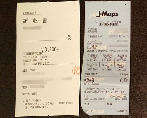カード払いの領収書と