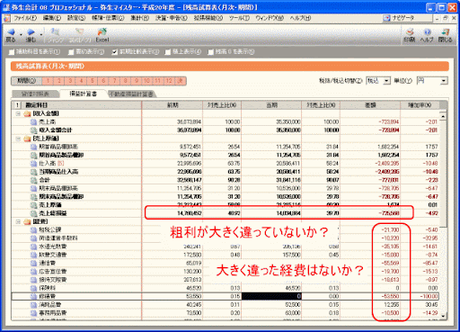 税理士は必ずこの前年比較をしています