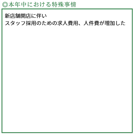 決算書の「本年中における特殊事情」